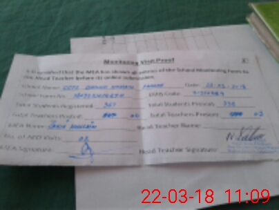 | Attendance Register | Head Teacher | MEA with School | Visit Proof |