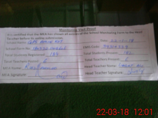 | EMIS Code: 39310339 | Name of School: GPS AMIN KOT | |||