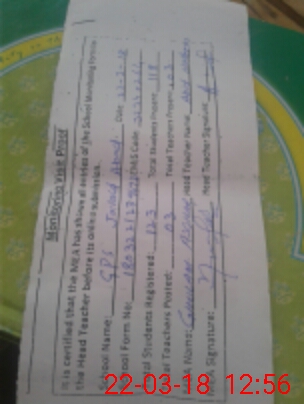 | Certified that this School was Inspected by the Undersigned MEA/DMO Today and the Information Stated Above is as Per Record. | |||||
