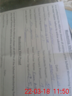 | Attendance Register | Head Teacher | MEA with School | Visit Proof |