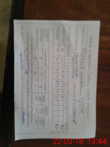 | Attendance Register | Head Teacher | MEA with School | Visit Proof |