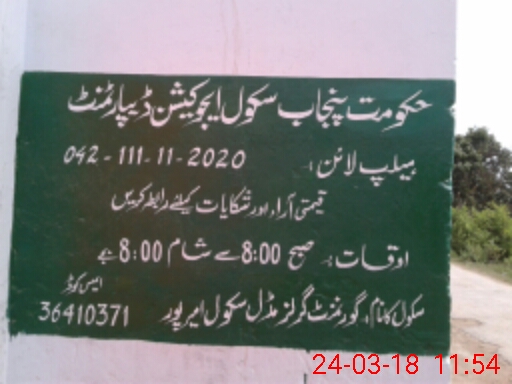 | EMIS Code: 36410371 | Name of School: GGES AMEER PUR, P/O NARHAL, KABIRWALA | |||