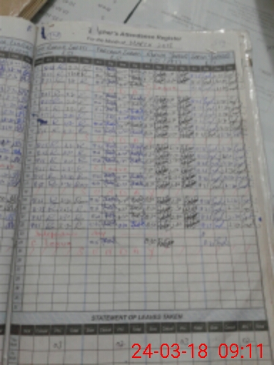 | No. of Students Present - Female | 0 | 58 | 40 | 27 | 25 | 24 | 26 | 89 | 58 | 45 | 76 | 71 | 48 | 38 | 625 | |