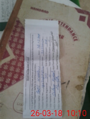 | CNIC | Full Name | Designation | R/C | Absence During Last Calender Month |
