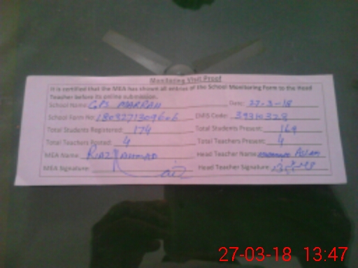 | Attendance Register | Head Teacher | MEA with School | Visit Proof |