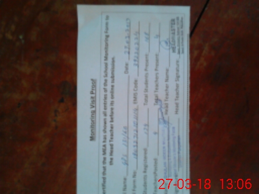 | Attendance Register | Head Teacher | MEA with School | Visit Proof |