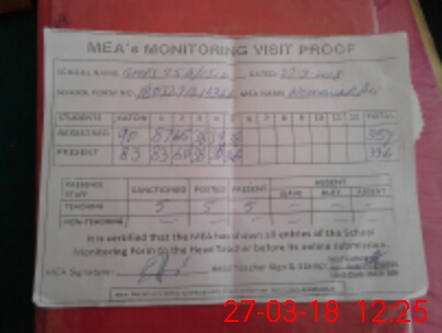 | Attendance Register | Head Teacher | MEA with School | Visit Proof |