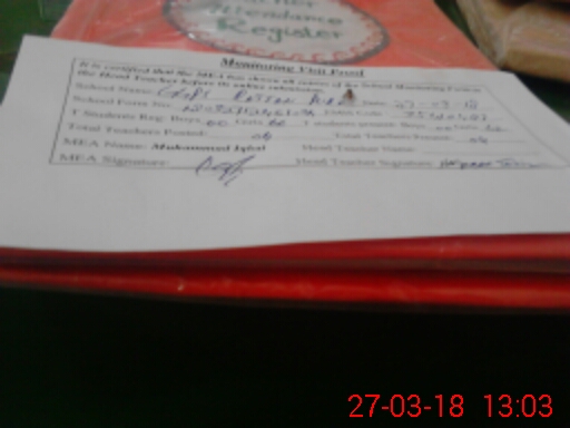 | Certified that this School was Inspected by the Undersigned MEA/DMO Today and the Information Stated Above is as Per Record. | |||||