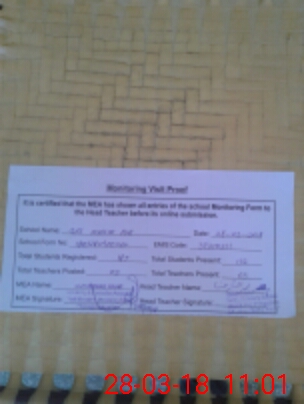 | Attendance Register | Head Teacher | MEA with School | Visit Proof |
