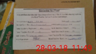 | Name: MIR**** Designation: (School Headmaster's/Headmistress's) H M Phone/Cell Number: 03**** |