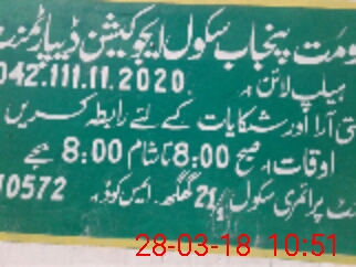 | EMIS Code: 36410572 | Name of School: GPS 21 GHAGH, ABDUL HAKIM | |||