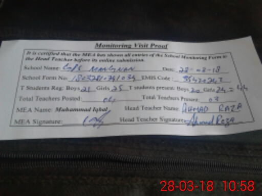 | EMIS Code: 35420243 | Name of School: GPS MANGNAN WALA | |||