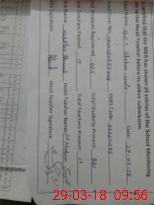 | Attendance Register | Head Teacher | MEA with School | Visit Proof |