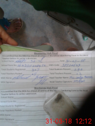 | Certified that this School was Inspected by the Undersigned MEA/DMO Today and the Information Stated Above is as Per Record. | |||||