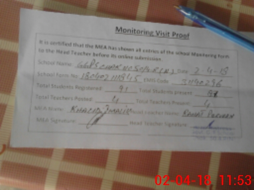 | Attendance Register | Head Teacher | MEA with School | Visit Proof |