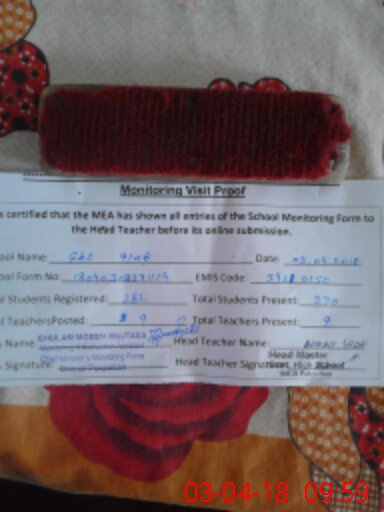 | Certified that this School was Inspected by the Undersigned MEA/DMO Today and the Information Stated Above is as Per Record. | |||||