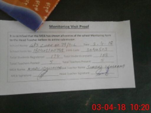 | Attendance Register | Head Teacher | MEA with School | Visit Proof |
