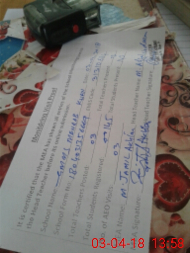 | Name: MAs**** Designation: (School Headmaster's/Headmistress's) PST Phone/Cell Number: 03**** |