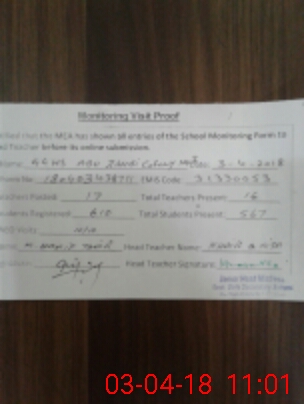 | Certified that this School was Inspected by the Undersigned MEA/DMO Today and the Information Stated Above is as Per Record. | |||||