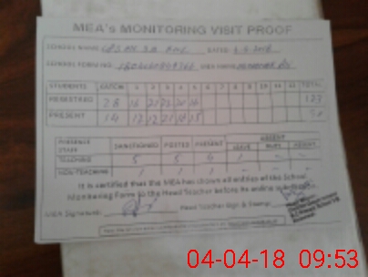 | Attendance Register | Head Teacher | MEA with School | Visit Proof |
