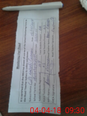 | Attendance Register | Head Teacher | MEA with School | Visit Proof |