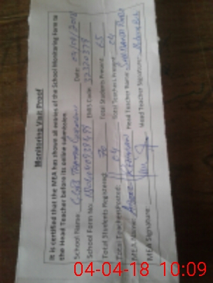 | Attendance Register | Head Teacher | MEA with School | Visit Proof |