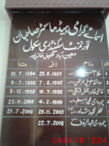 | District: RAHIMYAR KHAN | Tehsil: KHANPUR | Markaz: SECONDARY-WING | Level: High | |