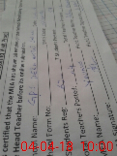 | Name: GH**** RA**** Designation: (School Headmaster's/Headmistress's) PST Phone/Cell Number: 03**** |