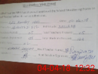 | Attendance Register | Head Teacher | MEA with School | Visit Proof |