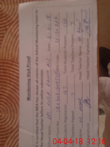 | Attendance Register | Head Teacher | MEA with School | Visit Proof |