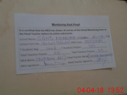 | EMIS Code: 35431285 | Name of School: GGHS KHARIAN WALA | |||