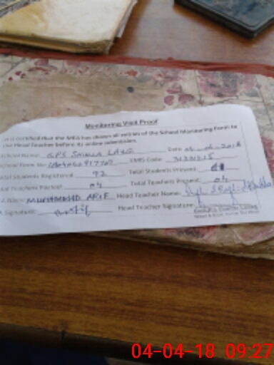 | Attendance Register | Head Teacher | MEA with School | Visit Proof |