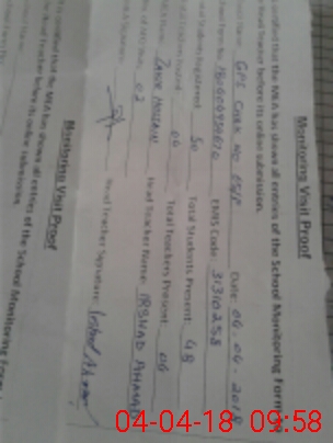 | Attendance Register | Head Teacher | MEA with School | Visit Proof |