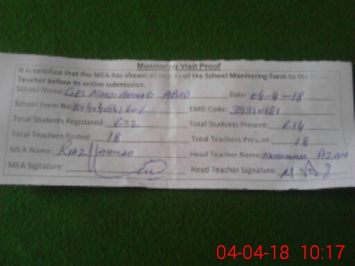 | Certified that this School was Inspected by the Undersigned MEA/DMO Today and the Information Stated Above is as Per Record. | |||||