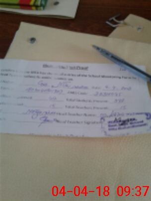 | Attendance Register | Head Teacher | MEA with School | Visit Proof |