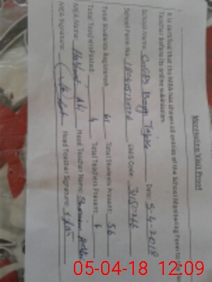| Attendance Register | Head Teacher | MEA with School | Visit Proof |