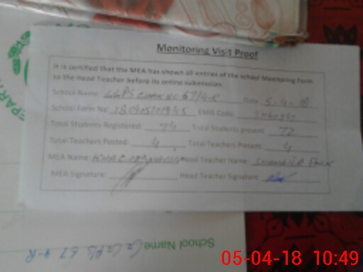 | Attendance Register | Head Teacher | MEA with School | Visit Proof |