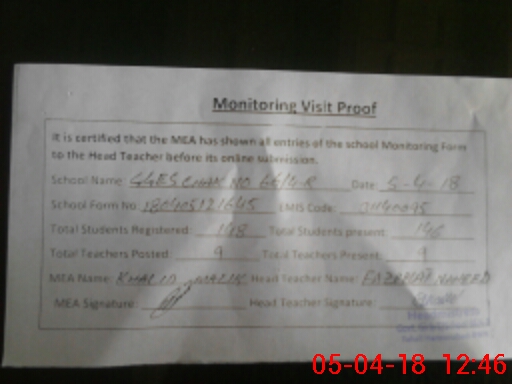 | Attendance Register | Head Teacher | MEA with School | Visit Proof |