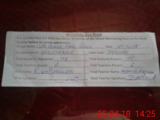 | EMIS Code: 39310191 | Name of School: GPS BUNGA KHAN SINGH | |||