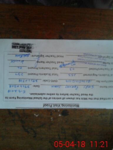 | Name: AI**** PE**** Designation: (School Headmaster's/Headmistress's) PST Phone/Cell Number: 03**** |