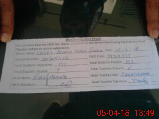 | Attendance Register | Head Teacher | MEA with School | Visit Proof |