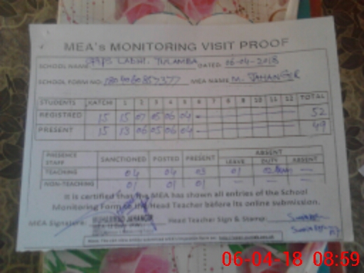 | Certified that this School was Inspected by the Undersigned MEA/DMO Today and the Information Stated Above is as Per Record. | |||||