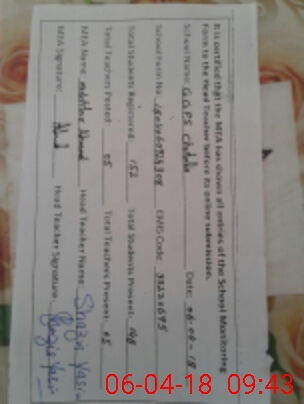 | Attendance Register | Head Teacher | MEA with School | Visit Proof |