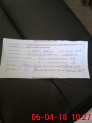 | Attendance Register | Head Teacher | MEA with School | Visit Proof |