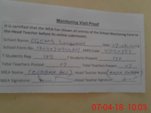 | EMIS Code: 35430757 | Name of School: GGCMS LONGO WALA | |||