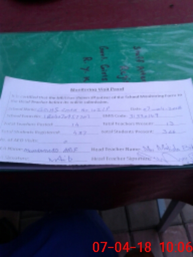 | Name: Ai**** Si**** Designation: (School Headmaster's/Headmistress's) Head Mistress Phone/Cell Number: 03**** |
