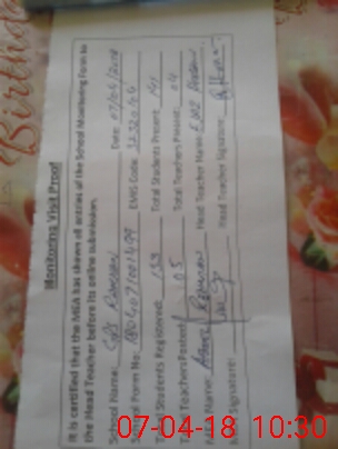 | Attendance Register | Head Teacher | MEA with School | Visit Proof |