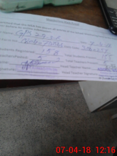 | Attendance Register | Head Teacher | MEA with School | Visit Proof |