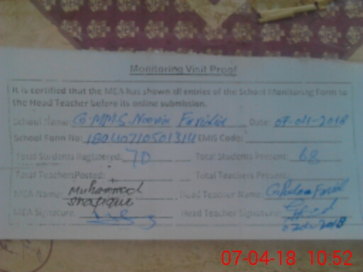 | EMIS Code: 32340261 | Name of School: GPS NOORIA FARIDIA | |||