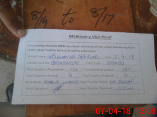 | Attendance Register | Head Teacher | MEA with School | Visit Proof |
